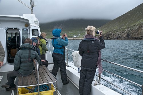 Cameras out as we arrive at Village Bay, Hirta.