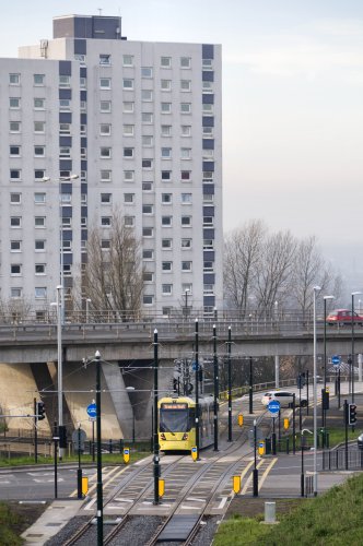Through the Oldham Way roundabout and flyover.