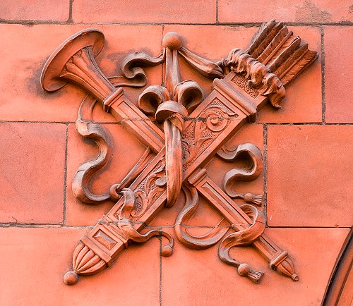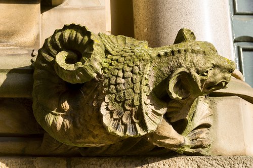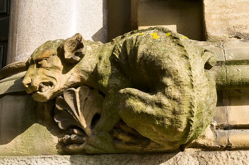 Around the magistrates' entrance are sculptures of fierce beasts, by Earp and Hobbs.