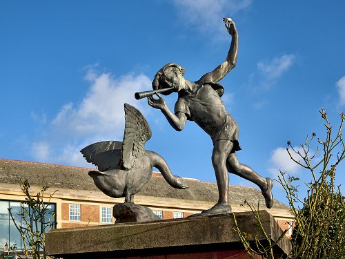 'Boy and Goose' statue, in the Sir Peter Hilton Memorial Gardens.