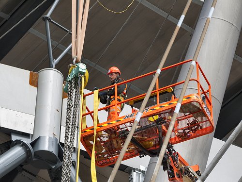 This temporary steelwork will be used to tension the ropes once all eight are in place.