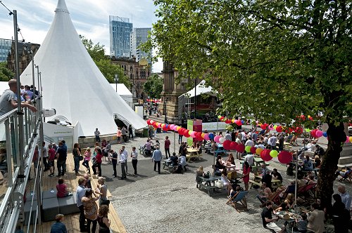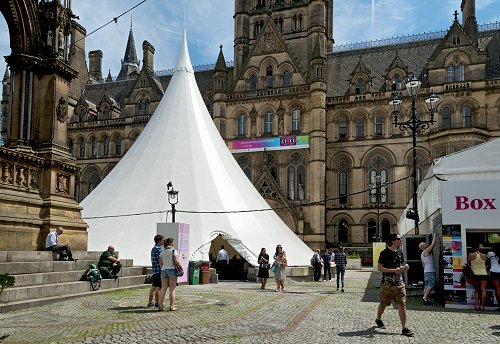 Manchester's first modern figurative outdoor sculpture. The inscription reads: