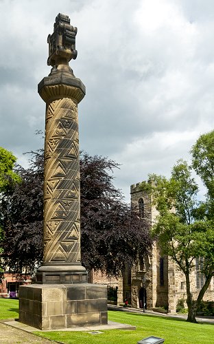 Stone column opposite the Durham Heritage Centre and Museum.