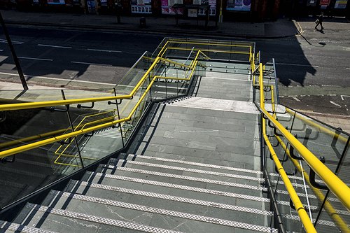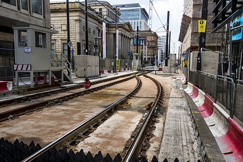 tram stop and track are built. Temporary points are installed on Mosley Street