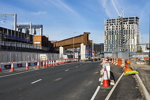 The Axis Tower site, now with a serious looking platform built over the canal.