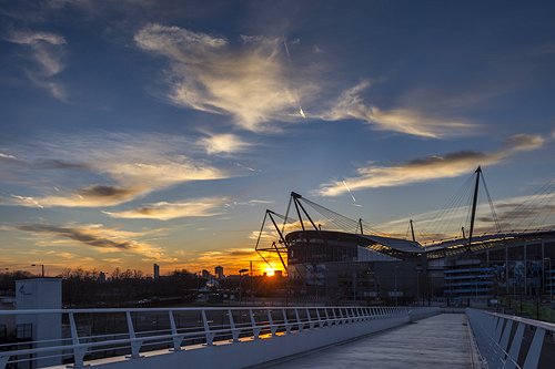 City of Manchester (Etihad) stadium and the city centre skyline.