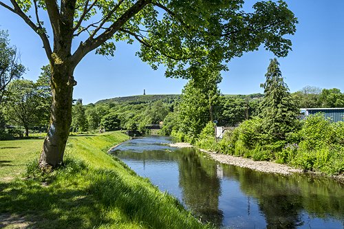 Peel Tower on Holcombe Hill over the river Irwell.