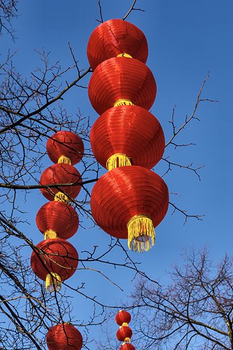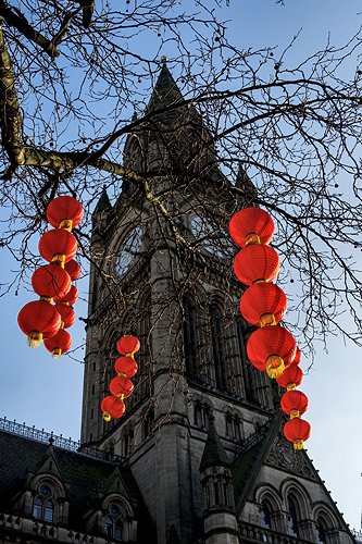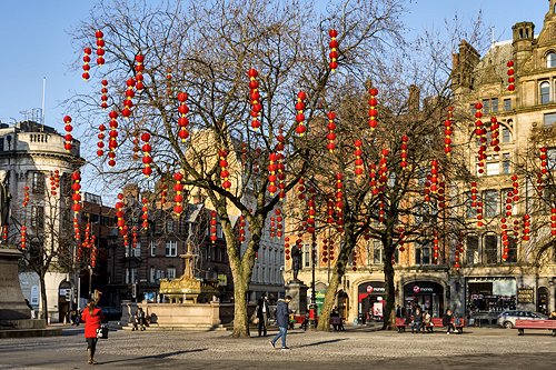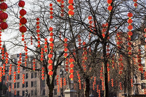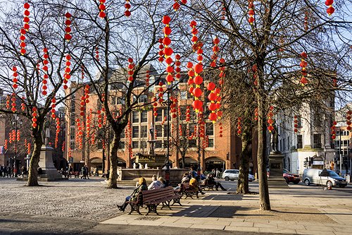 Chinese lanterns in Albert Square, for the Chinese New Year celebrations.