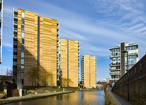 The St. Georges Island apartment blocks, from the Bridgewater Canal.