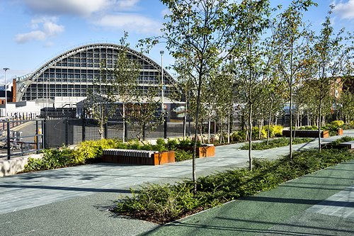 alongside the Bridgewater Hall, leading to Barbirolli Square.