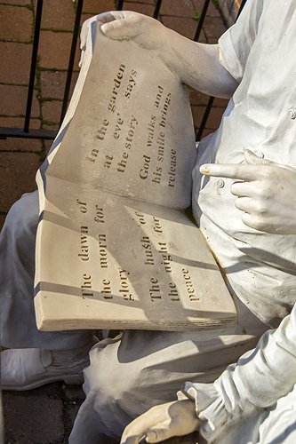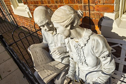 The statue of the elderly couple is still there.