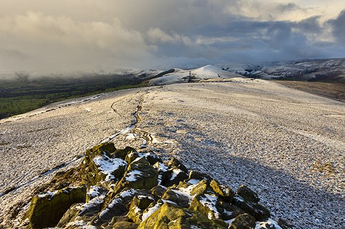 Snow shower petering out over Bradwell Edge.