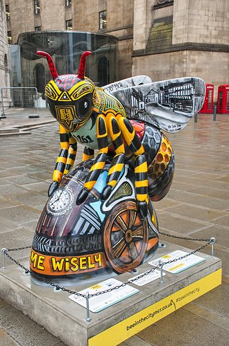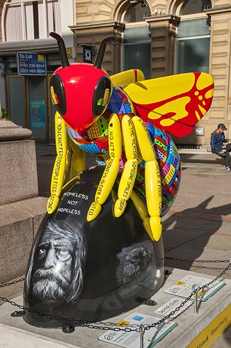 10 Aug 18 A wander around the city centre, mainly to photograph the Bees. Rain at first, brighter later.