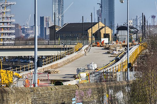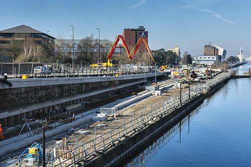 Construction work continues on the Metrolink Trafford Park Line