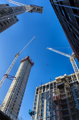 The Burlington House apartment block under construction, Piccadilly Basin.