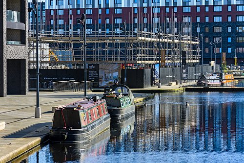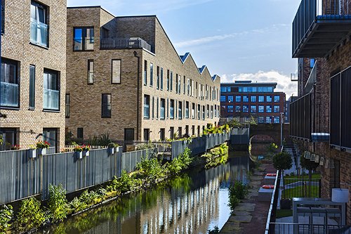 Islington Wharf Mews apartments by the New Islington arm of the Ashton Canal.