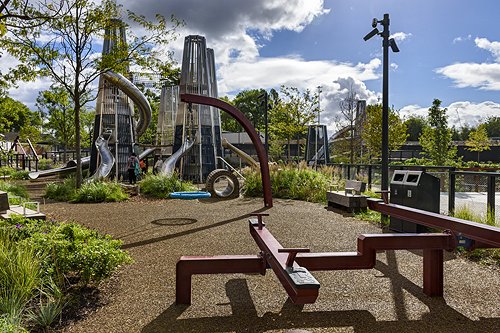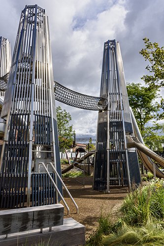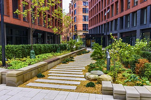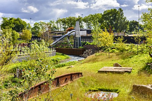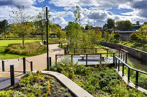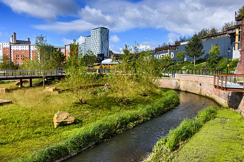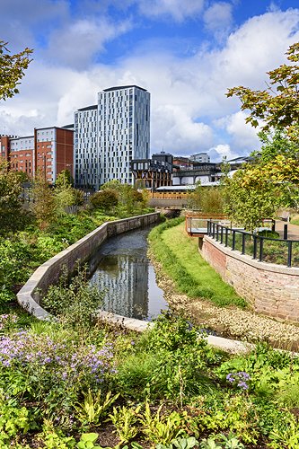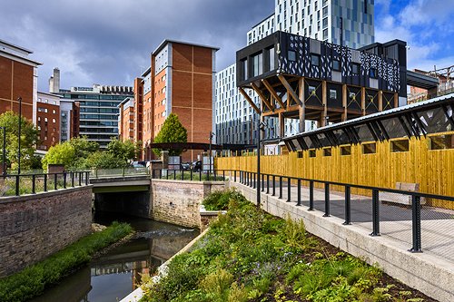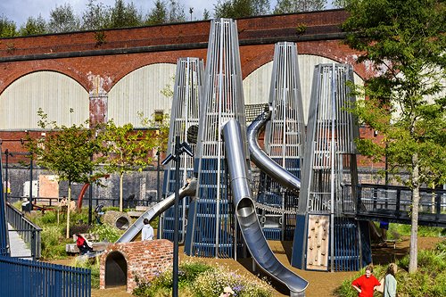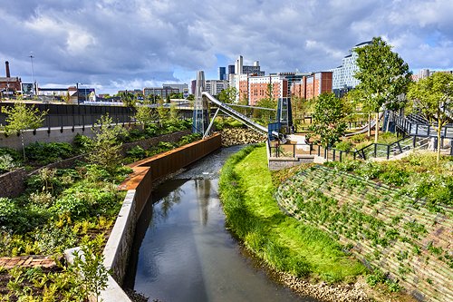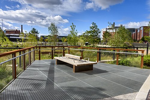 Located near to Piccadilly railway station, Mayfield Park is located on a formerly derelict area of Manchester