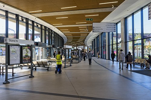 Inside the new bus station (sorry, 'Transport Interchange') building.