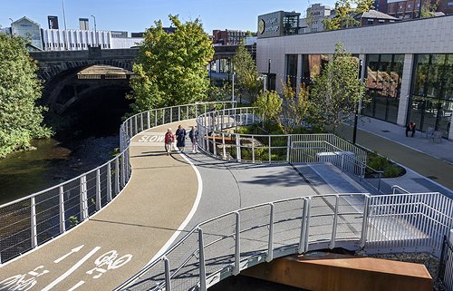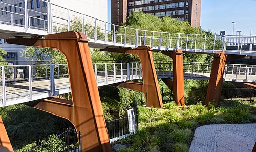The cycle and pedestrian ramp which leads up to Viaduct Park