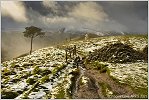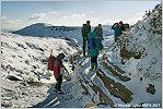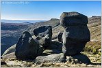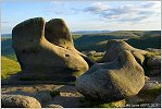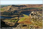 | The Peak District is an upland area in England at the southern end of the Pennines. It is mostly in northern Derbyshire, but includes parts of Cheshire, Greater Manchester, Staffordshire, West Yorkshire and South Yorkshire. An area of diversity, it is usually split into the Dark Peak, where most moorland is found and the geology is gritstone, and the White Peak, a limestone area, The Dark Peak forms an arc on the north, east and west sides; the White Peak makes up the central and southern tracts. It became the United Kingdom's first national park in 1951. Inhabited from the Mesolithic era, it shows evidence of that from the Neolithic, Bronze and Iron Ages. Settled by the Romans and Anglo-Saxons, it remained largely agricultural, though mining grew in importance in the Middle Ages. Then quarrying grew as mining declined. Tourism arose after the advent of the railways, thanks to the landscape, spa towns at Buxton and Matlock Bath, the Castleton show caves, and Bakewell, the park's one town. The Peak District is formed almost wholly of sedimentary rocks of the Carboniferous period. They make up the carboniferous limestone overlying gritstone, and the coal measures that occur only on the margins and the infrequent outcrops of igneous rocks, including lavas, tuffs and volcanic vent agglomerates. The general geological structure is that of a broad dome, whose western margins have been intensely faulted and folded. Uplift and erosion have sliced the top off the Derbyshire Dome to reveal a concentric outcrop pattern with coal-measured rocks on the eastern and western margins, carboniferous limestone at the core and rocks of millstone grit between them. The southern edge of the Derbyshire dome is overlain by sandstones of Triassic age, though they barely impinge on the National Park. The White Peak forms a central and southern section with carboniferous limestone found at or near the surface. The Dark Peak to the north, east and west is marked by millstone grit outcrops and broad swathes of moorland.