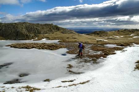 A frozen pool near the top of Steel Edge on Wetherlam