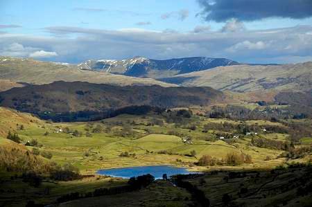 Little Langdale Tarn with the Kentmere fells behind.