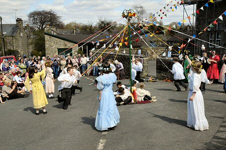 The local school children give an excellent demonstration of a Maypole Dance