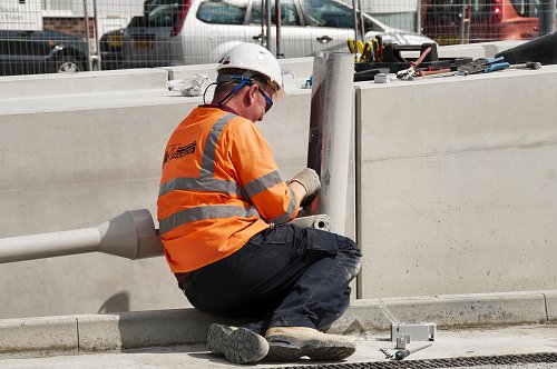 These are the bases for the overhead support poles, set in a hefty lump of concrete.
