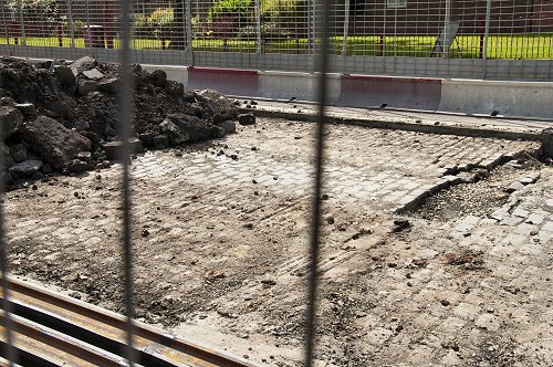 The old stone setts exposed on Manchester Road.