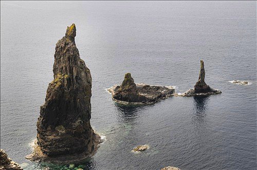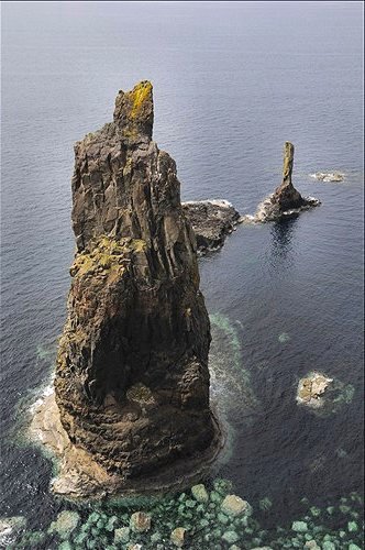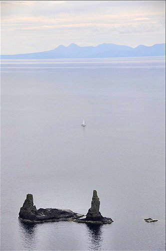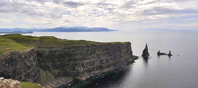 Two of the Maidens with the Western Isles in the distance.