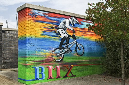 Wall mural at the National Cycling Centre, Clayton.