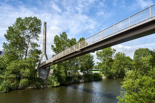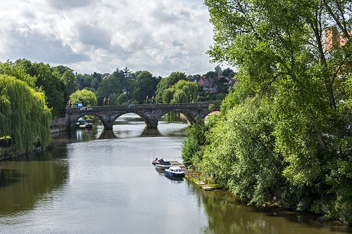 Welsh Bridge and the river Severn from the Frankwell footbridge.