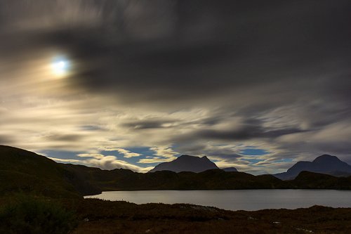 Cùl Mor and Cùl Beag by moonlight. From Loch Buine Mòire, Coigach.