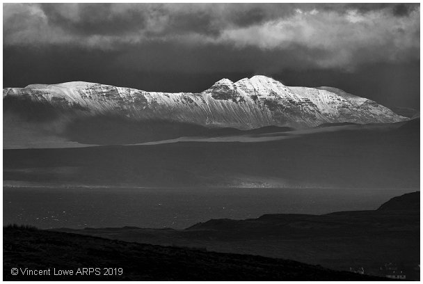 Sunlight on the ridge of Baosbheinn in the Shieldaig Forest,