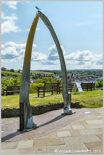 The whalebone arch commemorates Whitby's historic links to the whaling industry. It is the second such arch, the original is preserved in Whitby Archives Heritage Centre. Get this image from alamy