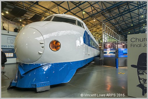 National Railway Museum, YorkJapanese Shinkansen Leading Car 22-141 'Bullet Train', built by West Japan Railways in 1976 and withdrawn from service in October 2000. The Shinkansen (literally 'new trunk line') is a network of high-speed railway lines in Japan. The maximum operating speed is 320 km/h (200 mph) while test runs have reached 443 km/h (275 mph). The original Tōkaidō Shinkansen, connecting the largest cities of Tokyo and Osaka, is the world's busiest high-speed rail line, carrying 151 million passengers per year (March 2008).